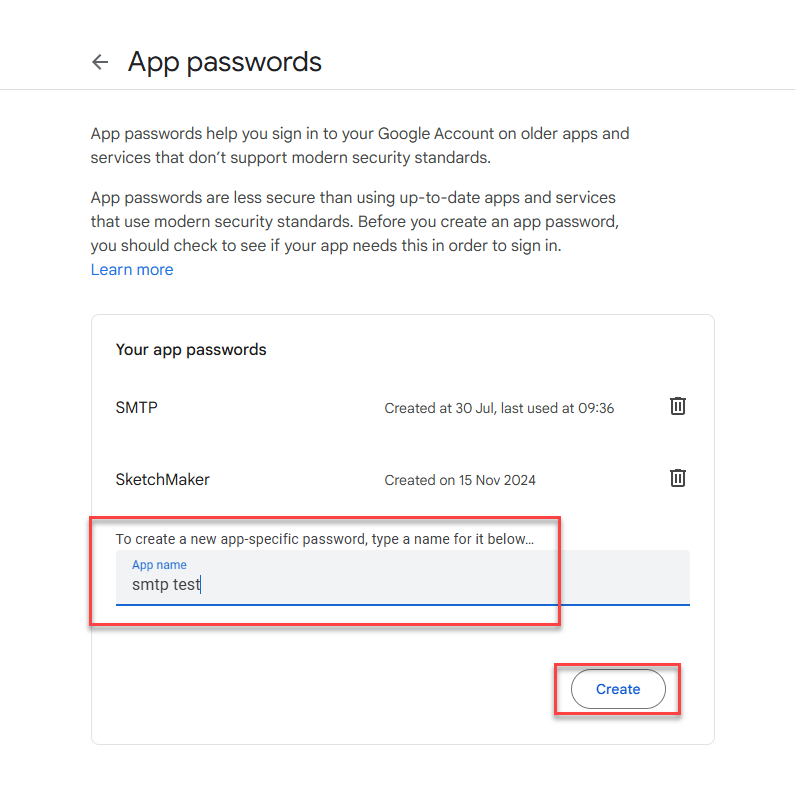 1. Go to [Google Account Settings](https://myaccount.google.com/apppasswords)