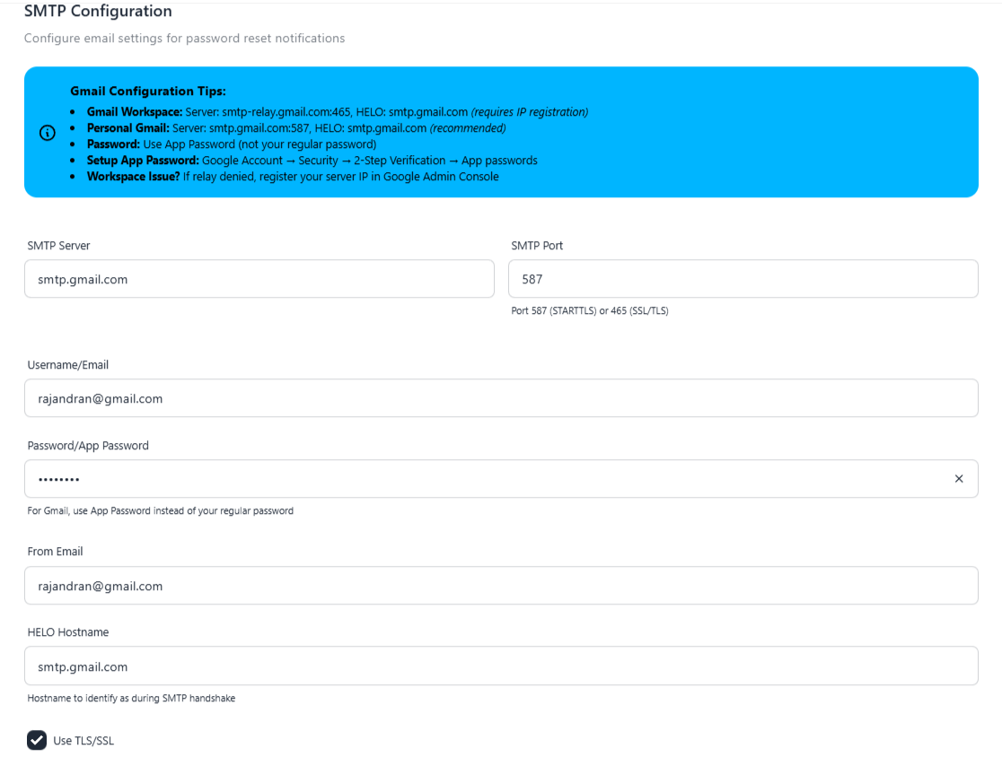After migration, go to **Profile → SMTP Configuration** and use: